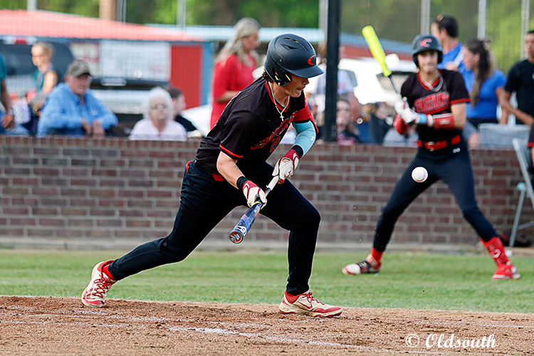 Senior Joe Sutherlin gets a great bunt to start the second and get a base hit in home playoff action with the Avoyelles Mustangs. Caldwell won the game 6-0 in 7